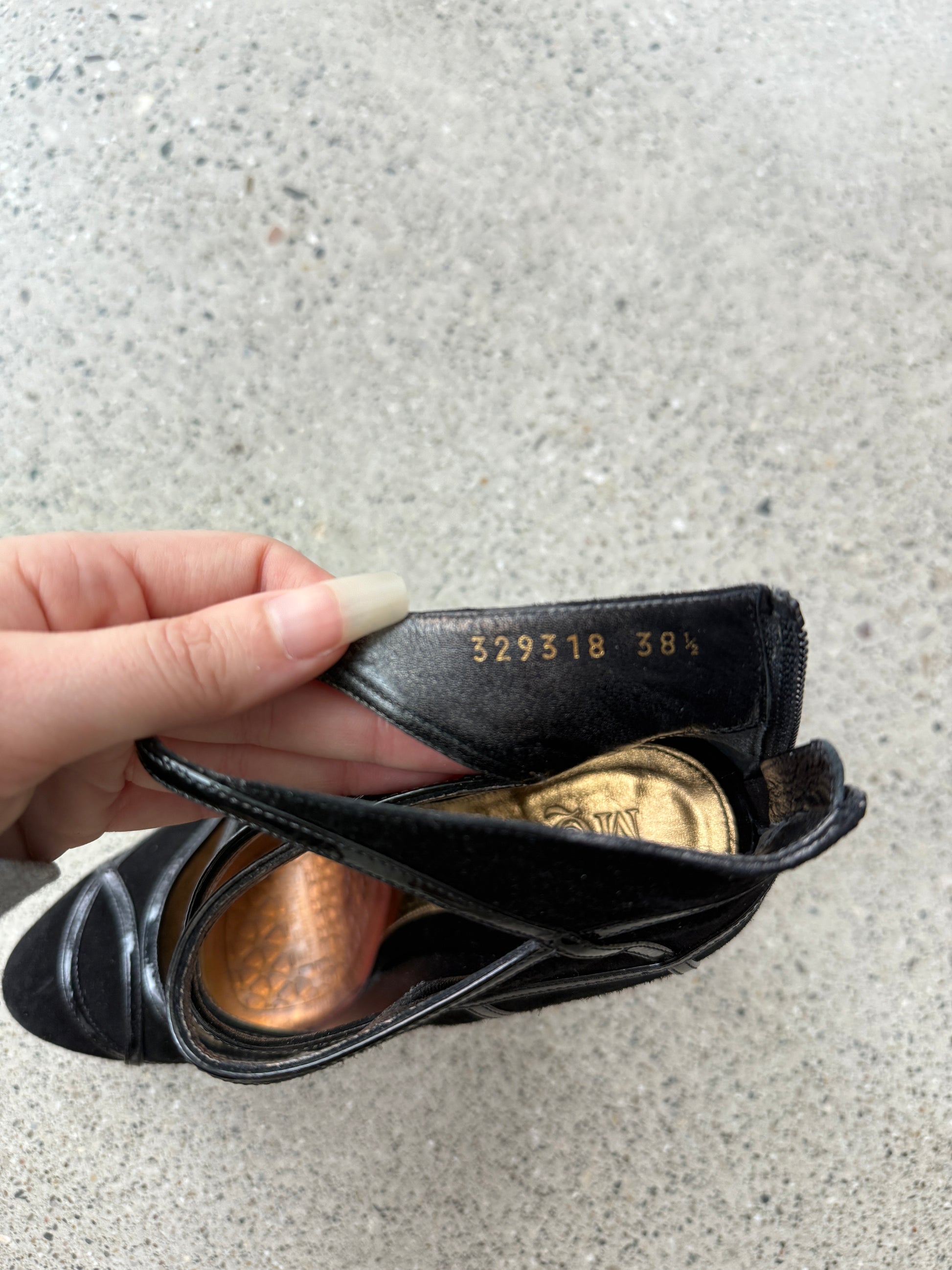 black suede and leather
